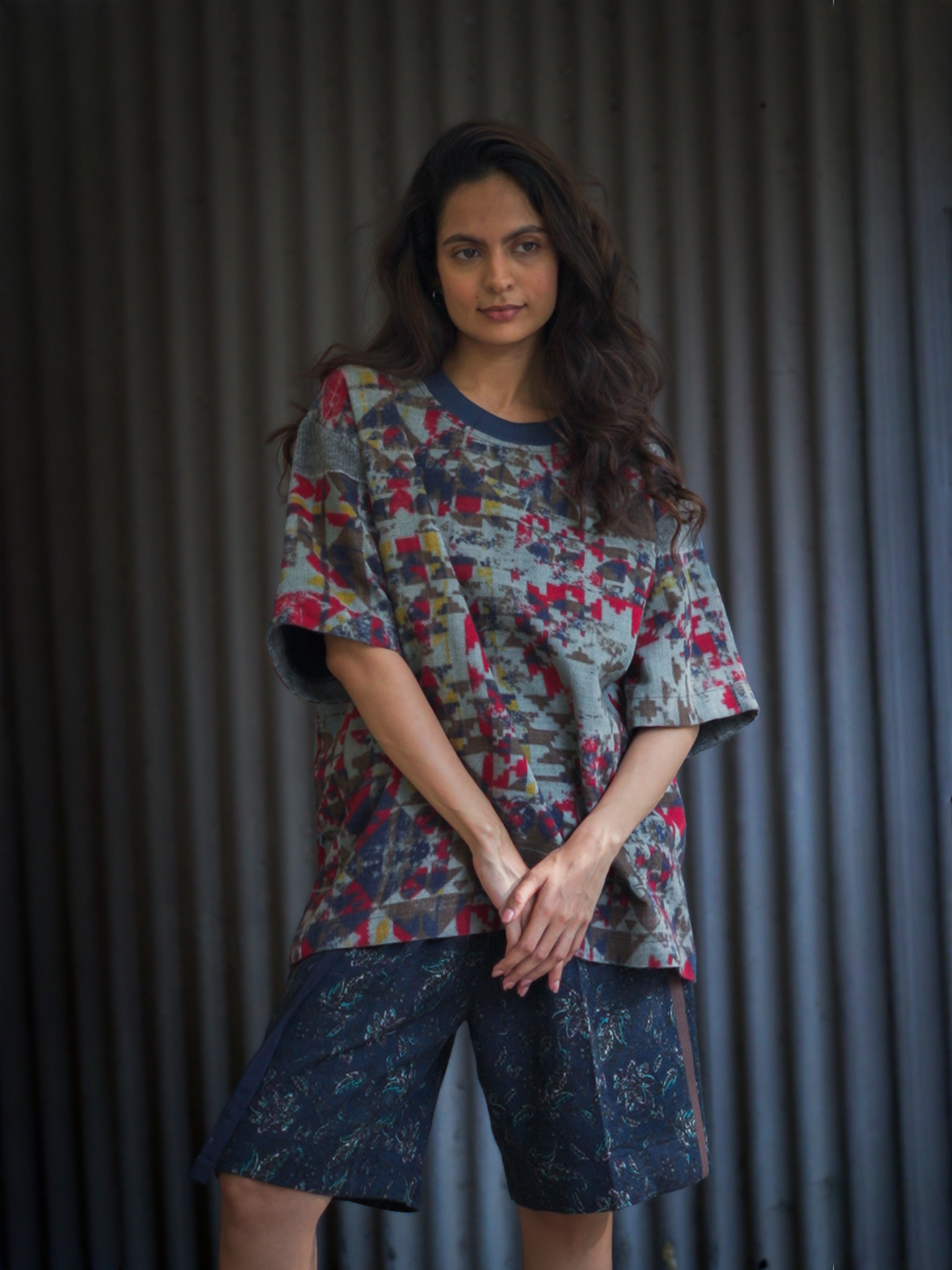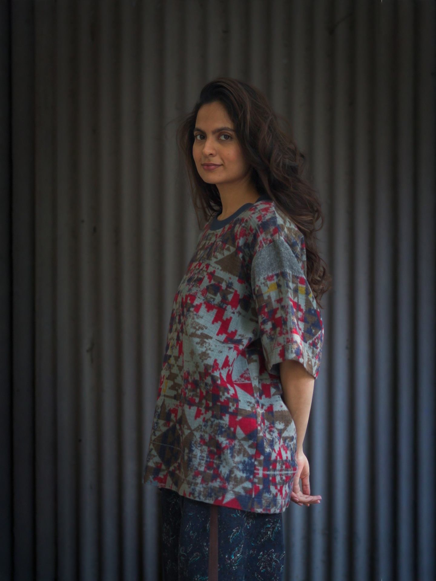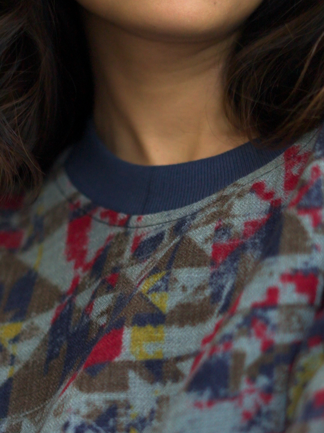 Woollen abstract printed tee, crew neck, cotton lined