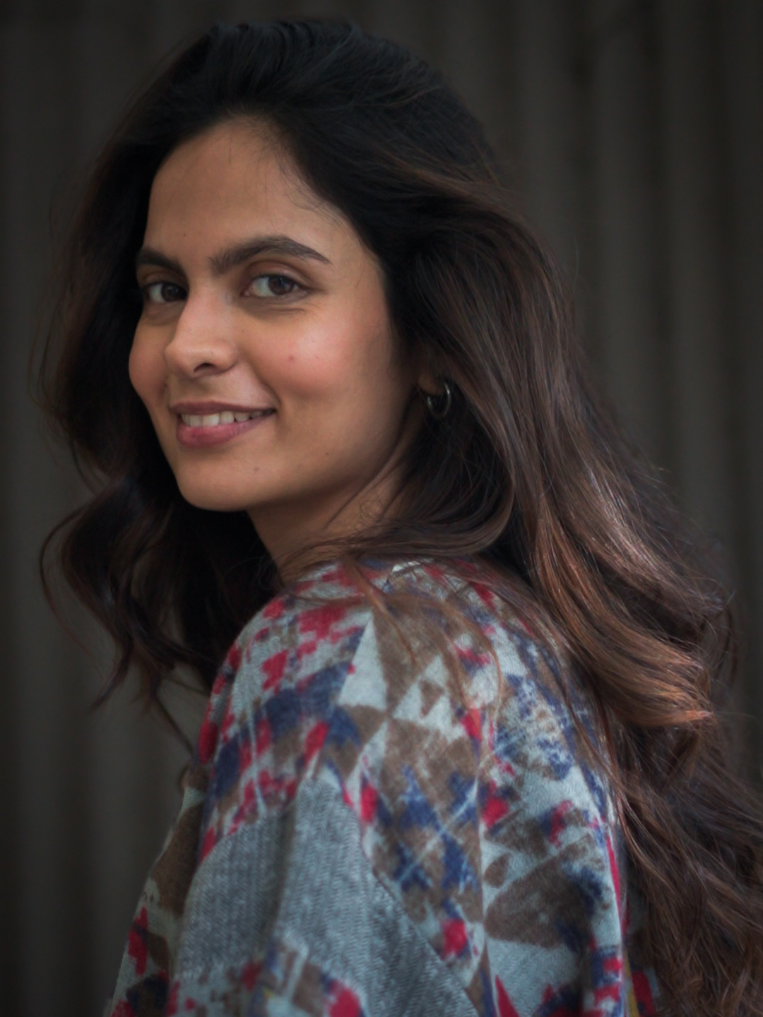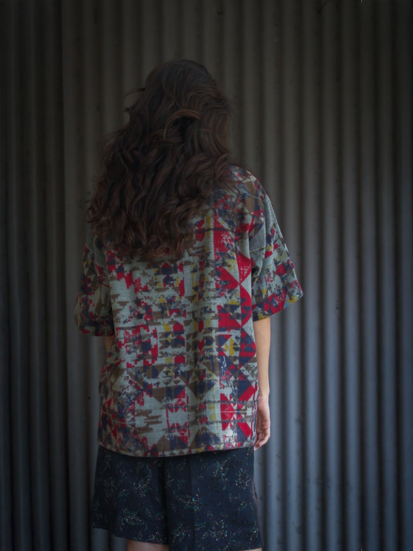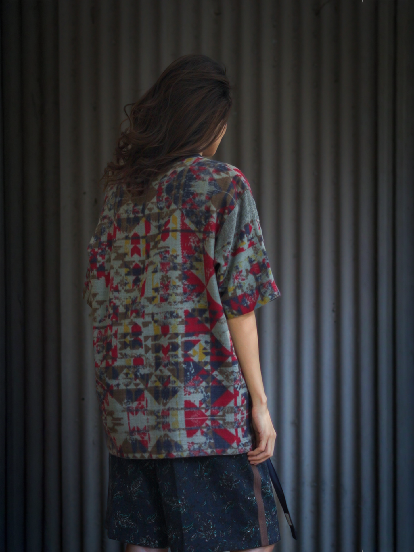 Woollen abstract printed tee, crew neck, cotton lined